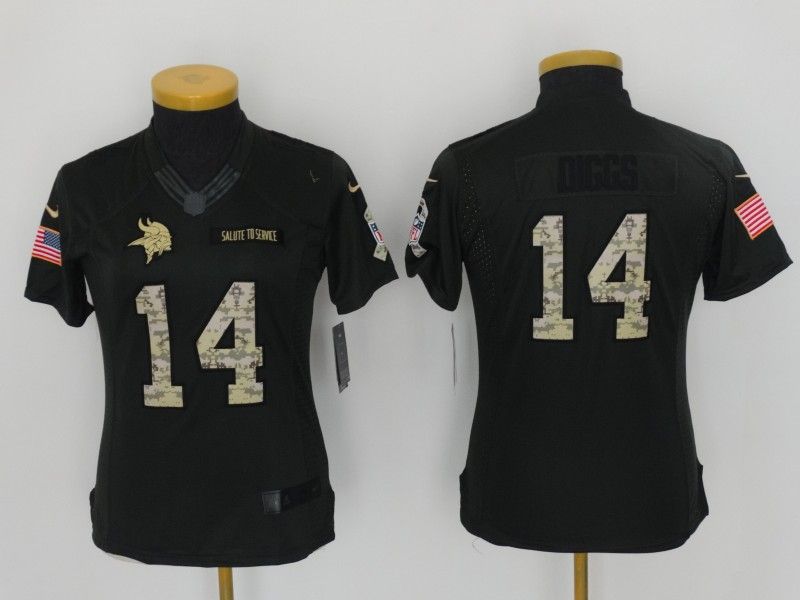 Minnesota Vikings DIGGS #14 Olive Salute To Service Women NFL Jersey